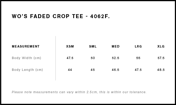 Relaxed fit Crew neck Mid weight, 180g / 5.3oz, 28-singles 100% combed cotton Short body, dropped shoulders, neck ribbing, side seamed, shoulder to shoulder tape, double needle hems, preshrunk to minimise shrinkage