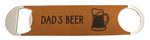 Stainless steel bottle opener gift item with leatherette for engraving purposes.