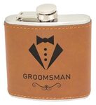 Stainless steel flask wrapped with rawhide leatherette. Terrific gift idea for achievements and celebrations with space for your engraving.