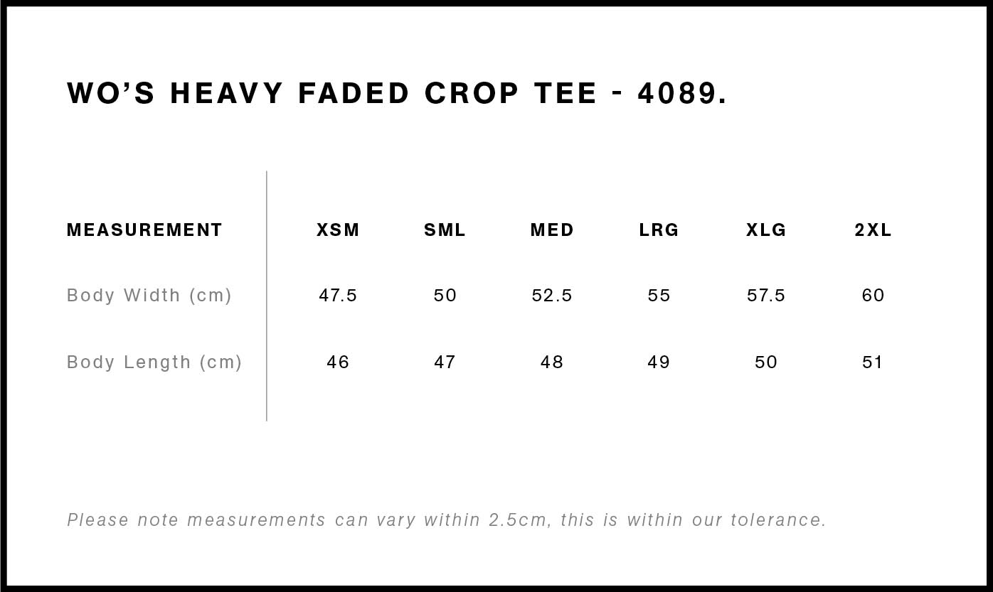 The AS Colour Womens' Heavy Faded Crop Tee, crafted from 100% carded cotton for durability and comfort. With a heavy 240 GSM weight and garment dyed finish, it features a cropped relaxed fit, shoulder to shoulder tape, and twin-stitched wide neck ribbing. Built to last for a timeless, relaxed look.