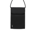 One main flat compartment, velcro to close, one external zipped pocket, YKK zip, single plastic adjuster on shoulder strap.