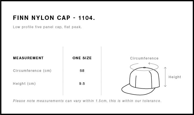 Fit: Low Profile Fabric: Light weight, 100% recycled nylon body Construction: Low profile - five panel cap Flat tonal peak, quick dry fabric, adjustable plastic fastener with elastic straps One size fits all Tear-out AS Colour label