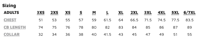 | XXXS | XXS | XS | S | M | L | XL | 2XL | 3XL | 4XL | 5XL | 6/7XL | |