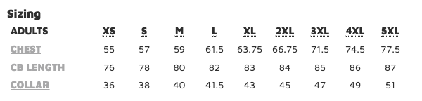 | CHEST | 55 | 57 | 59 | 61.5 | 63.75 | 66.75 | 71.5 | 74.5 | 77.5 |